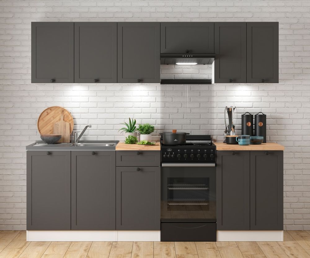 Angielski komplet kuchenny 230 z blatem JUNONA 19 – BW – kolor grafit + blat dąb