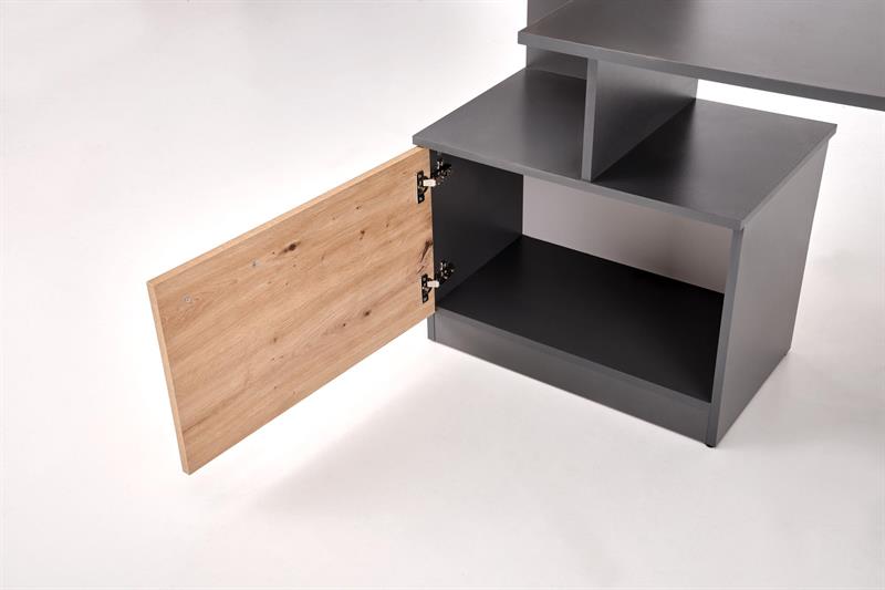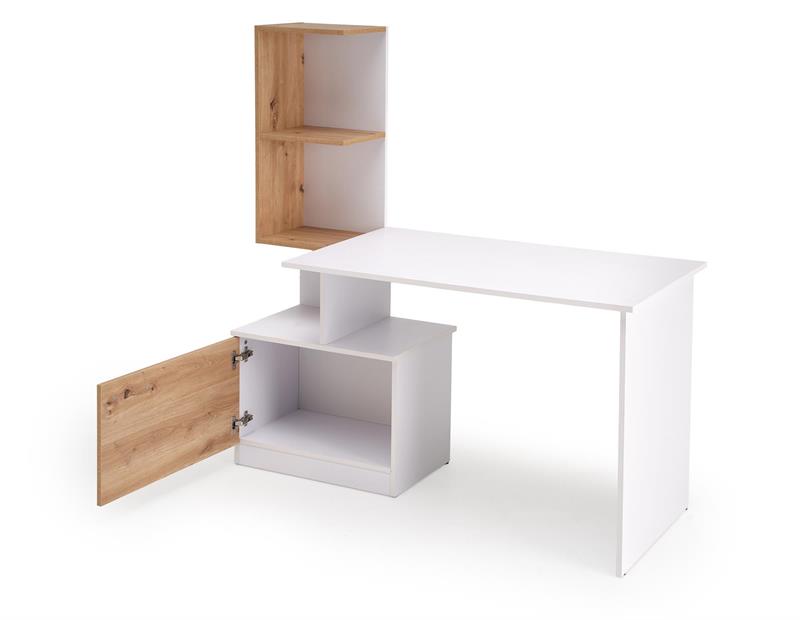Przestronny blat zapewnia wystarczająco dużo miejsca na laptopa, monitor, zeszyty czy lampkę biurkową. Regał z półkami umożliwia wygodne przechowywanie segregatorów, książek czy dekoracji, dzięki czemu Twoje miejsce pracy staje się nie tylko funkcjonalne, ale i przytulne.