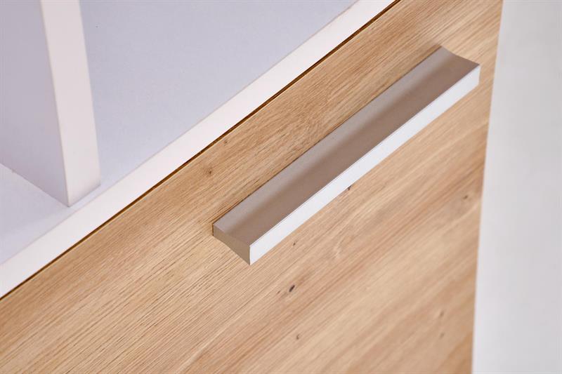 Mebel powstał z płyty meblowej laminowanej, co gwarantuje jego trwałość, odporność na codzienne użytkowanie oraz łatwość w pielęgnacji. Wystarczy wilgotna ściereczka, aby biurko znów wyglądało jak nowe. To wybór na lata, który nie tylko spełnia swoje zadanie, ale również dodaje wnętrzu elegancji.