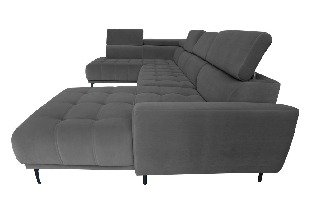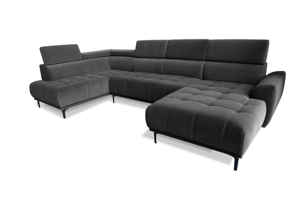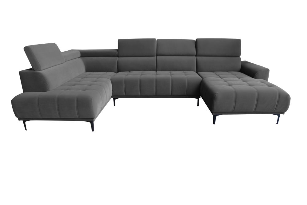 Ozdobne przeszycia nadają narożnikowi wyjątkowego charakteru. Całość obita jest wysokiej jakości tkaniną. Narożnik jest wolnostojący, co daje pełną swobodę aranżacji. Tył mebla również prezentuje się estetycznie. To rozwiązanie idealne do otwartych przestrzeni. To styl, który wpisuje się w najnowsze trendy wnętrzarskie. To elegancja, która przyciąga wzrok. To design, który podkreśla charakter wnętrza. Duży narożnik w kształcie u z regulowanymi zagłówkami CANCUN XL wygląda luksusowo. To detal, który buduje całość.