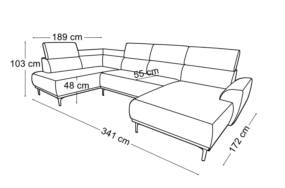 Szerokość 341 cm zapewnia ogromną przestrzeń do wypoczynku. Głębokość 172/189 cm daje swobodę wyboru pozycji siedzenia. Wysokość 103 cm gwarantuje odpowiednie podparcie pleców. Każdy centymetr tego narożnika został zaprojektowany z myślą o maksymalnym komforcie. To idealne rozwiązanie dla dużych rodzin. To także świetna opcja dla osób, które lubią przyjmować gości. To przestrzeń, która pomieści wszystkich. To wygoda, która nie ma kompromisów. To luksus dostępny na co dzień. To miejsce, w którym odpoczniesz po długim dniu. To strefa relaksu, której potrzebujesz.
