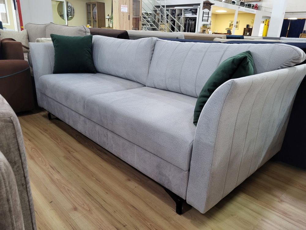 Jasnoszara kanapa z modnymi bokami ELSA to mebel nie tylko piękny, ale i praktyczny. Dzięki funkcji rozkładania w systemie „delfin”, zmiana kanapy w łóżko jest wyjątkowo łatwa i szybka. To idealne rozwiązanie dla osób, które potrzebują dodatkowej powierzchni spania, ale nie chcą rezygnować z estetycznego wyglądu salonu. Co więcej, kanapa została wyposażona w pojemnik na pościel, co pozwala na utrzymanie porządku w pomieszczeniu i eliminuje potrzebę poszukiwania miejsca na koce, poduszki czy kołdry.