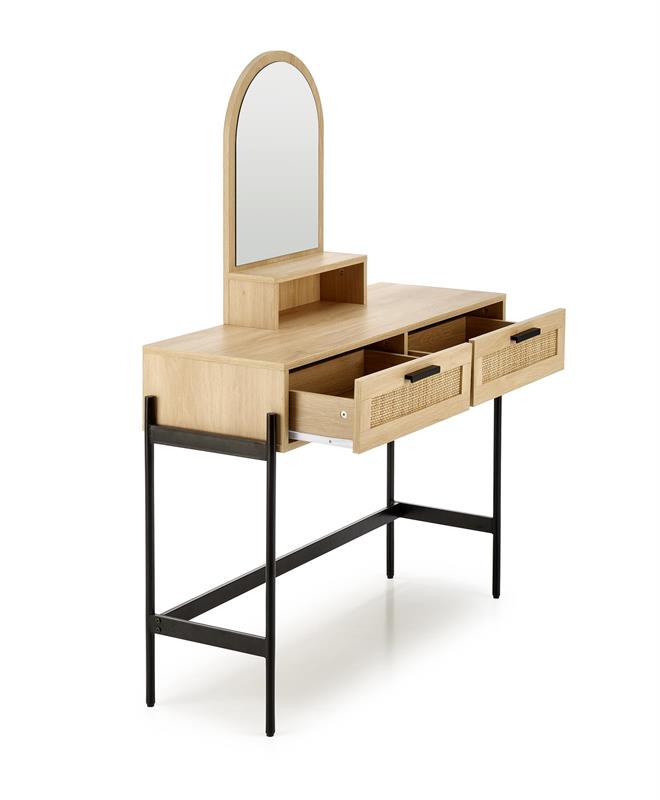 Konsolka w stylu boho z lustrem CARMEN to mebel, który od pierwszego spojrzenia przyciąga uwagę. Jej wyjątkowe połączenie boho stylu z nutą nowoczesności sprawia, że pasuje zarówno do klasycznych, jak i bardziej współczesnych wnętrz. To nie tylko funkcjonalny element wyposażenia, ale także dekoracja, która stanie się sercem Twojego przedpokoju, sypialni czy garderoby.