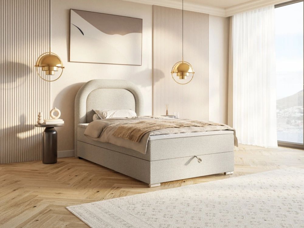 Łóżko kontynentalne boxspring 120×200 BELLINI to model zaprojektowany z dbałością o każdy szczegół. Ozdobne wezgłowie nadaje mu charakter luksusowego mebla, a smukła tapicerowana rama typu slim (4 cm grubości) subtelnie podkreśla jego formę. Dzięki swojej estetyce doskonale wpisuje się zarówno w nowoczesne wnętrza, jak i klasyczne aranżacje, wprowadzając do sypialni elegancję i przytulny klimat.