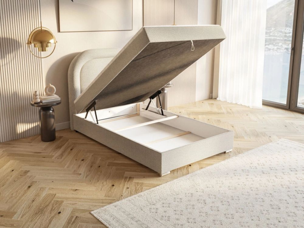 Łóżko kontynentalne boxspring 120×200 BELLINI to nie tylko design i wygoda, ale także praktyczne detale, które doceni każdy użytkownik. Wyposażone zostało w pojemny schowek na pościel, otwierany od przodu za pomocą mechanizmu uchylnego. To świetne rozwiązanie dla osób, które potrzebują dodatkowej przestrzeni do przechowywania kołder, poduszek, koców czy innych tekstyliów.