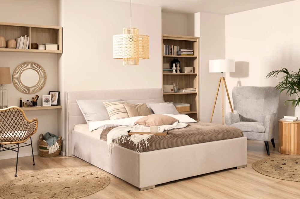 Jedną z największych zalet tego modelu jest pojemny, otwierany pojemnik na pościel. Dzięki podnośnikowi gazowemu unoszenie stelaża jest proste i lekkie, co sprawia, że z łatwością można przechowywać dodatkowe koce, poduszki czy pościel. To doskonałe rozwiązanie do mniejszych mieszkań lub sypialni, w których liczy się każdy centymetr wolnej przestrzeni. Pojemnik staje się niezastąpionym miejscem do przechowywania, które pozwala zachować porządek i harmonię w pomieszczeniu.