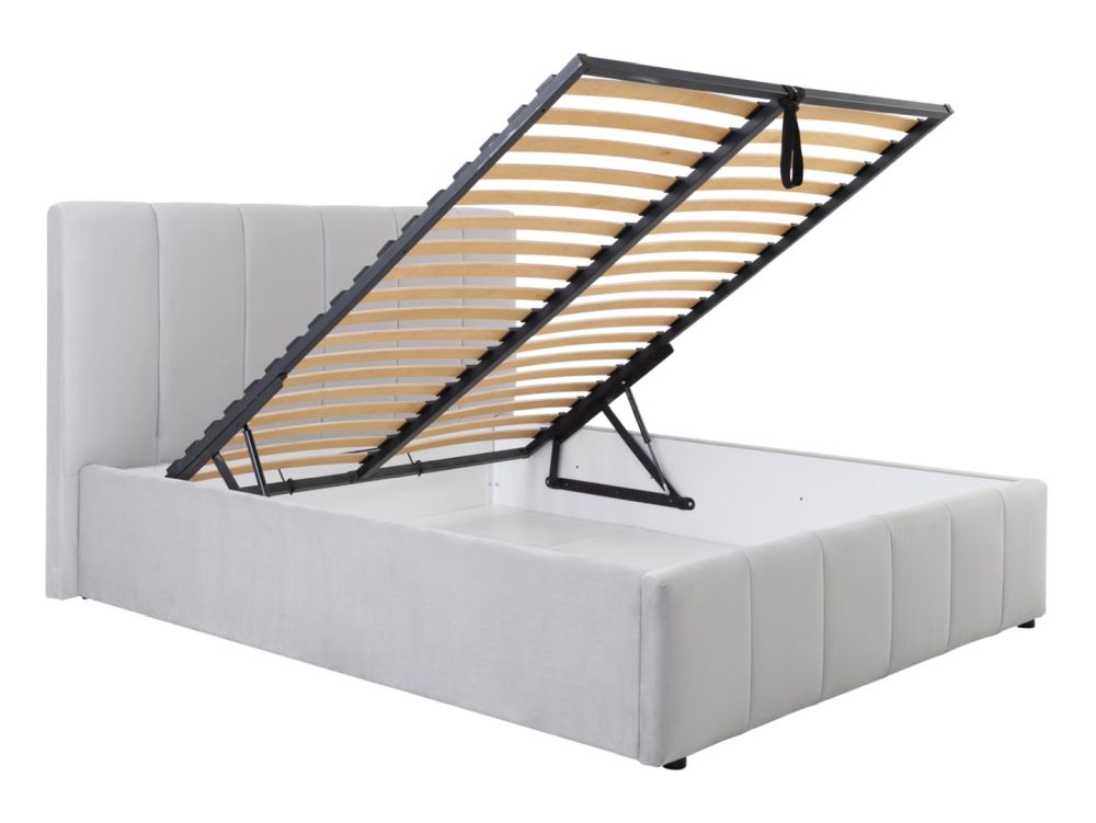 Łóżko ze stelażem 160cm tapicerowane LONES to nie tylko elegancki element wyposażenia, ale również praktyczne rozwiązanie do codziennego użytkowania. Wbudowana funkcja spania i nowoczesny automat rozkładający sprawiają, że podnoszenie stelaża jest lekkie, szybkie i niemal bezwysiłkowe. To ogromna wygoda, która pozwala każdemu w łatwy sposób dostać się do pojemnego schowka na pościel. System działania jest intuicyjny, cichy i niezwykle przydatny, szczególnie gdy zależy nam na maksymalnym wykorzystaniu przestrzeni w sypialni.