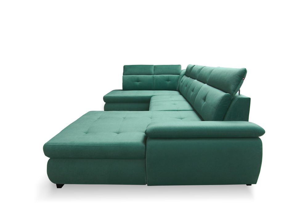 Narożnik U z regulacją zagłówków i podłokietników WIND U wyróżnia się wyjątkowym designem, który doskonale wpisuje się w nowoczesne trendy wnętrzarskie. Ozdobne przeszycia i piki nadają mu elegancki charakter. Niskie nóżki podkreślają jego minimalistyczną formę. Całość prezentuje się niezwykle stylowo. To mebel, który stanie się centralnym punktem Twojego salonu. To design, który zachwyca. To estetyka, która przyciąga uwagę. To wybór dla osób, które cenią piękno i jakość.