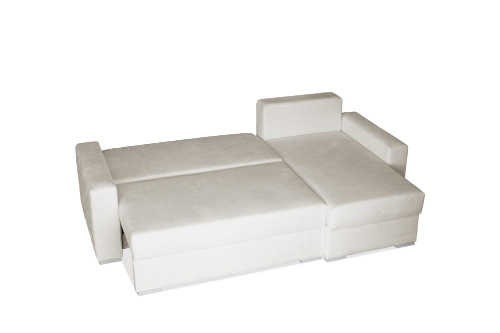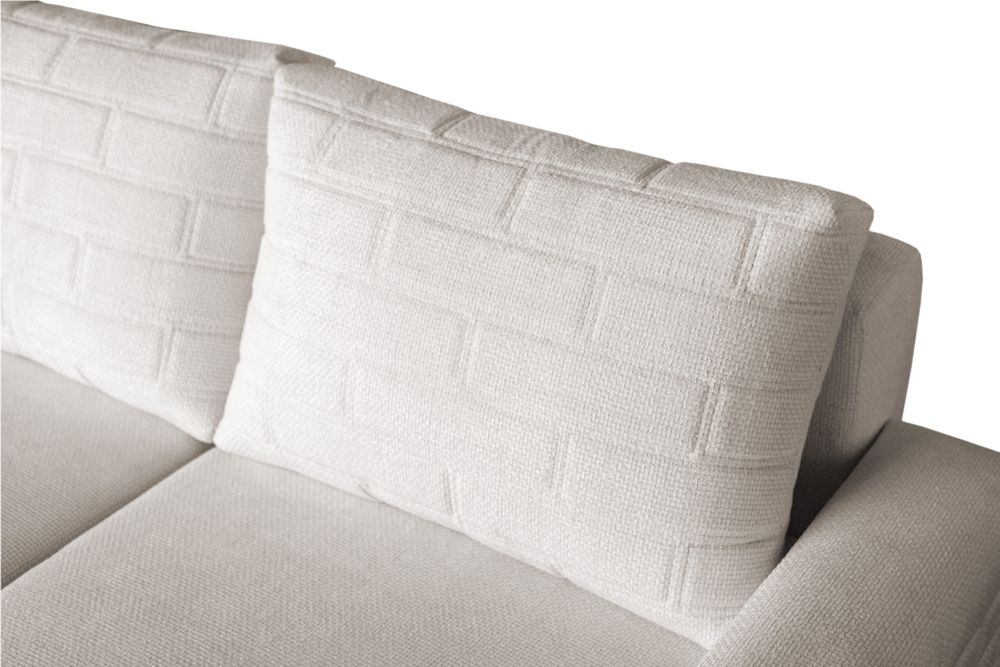 Narożnik uniwersalny z ozdobnymi wstawkami rozkładany BRICK został wyposażony aż w dwa pojemniki na pościel, dzięki czemu zyskujesz dodatkową przestrzeń do przechowywania. To ogromna zaleta szczególnie w mniejszych mieszkaniach, gdzie każda wolna przestrzeń ma znaczenie. Pojemniki są łatwo dostępne, pojemne i idealnie sprawdzą się na pościel, koce, poduszki czy inne przedmioty codziennego użytku.