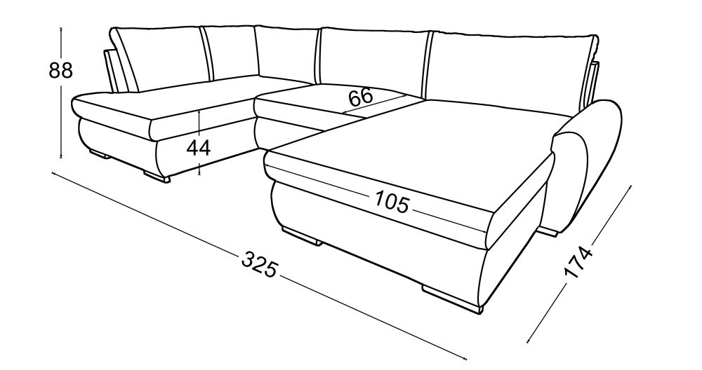 Narożnik w kształcie u i dużą funkcją spania CANYON XL dzięki szerokości 325 cm i głębokości 172 cm narożnik oferuje ogromną przestrzeń do siedzenia i wypoczynku. To idealne rozwiązanie dla dużych rodzin, osób ceniących przestrzeń lub tych, którzy uwielbiają przyjmować gości. Każdy znajdzie tu swoje miejsce, a komfort użytkowania pozostaje na najwyższym poziomie niezależnie od sytuacji.