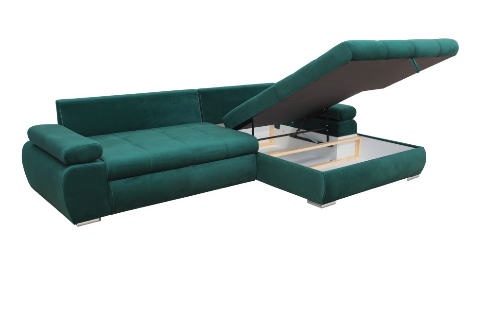 Narożnik z ogromną funkcją spania i szeroką otomaną BREVA został wyposażony w pojemny schowek na pościel, do którego dostęp jest szybki i wygodny. To idealne miejsce na przechowywanie koców, poduszek czy innych tekstyliów, które chcesz mieć zawsze pod ręką, ale jednocześnie poza widokiem. Dodatkowym atutem są ruchome podłokietniki, które pozwalają dostosować mebel do indywidualnych potrzeb użytkownika i zwiększają komfort korzystania.