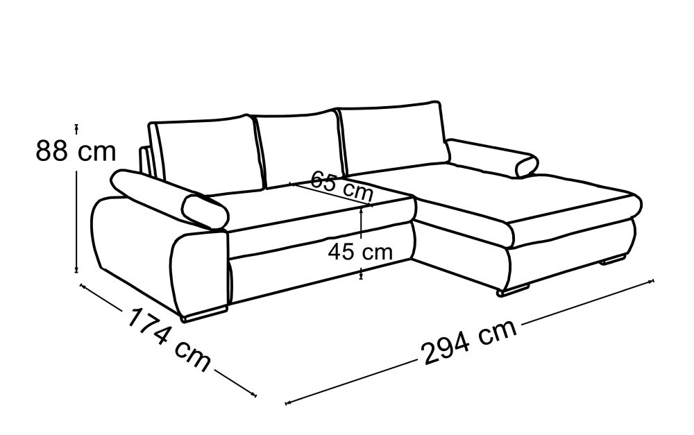 Szerokość 294 cm i głębokość 174 cm sprawiają, że narożnik z ogromną funkcją spania i szeroką otomaną BREVA oferuje naprawdę dużą przestrzeń do relaksu. Szeroka otomana to idealne miejsce na odpoczynek po ciężkim dniu, wieczorne oglądanie filmów czy spotkania z bliskimi. Dzięki tak dużym wymiarom każdy znajdzie dla siebie wygodne miejsce, a salon zyska funkcjonalne i efektowne centrum życia domowego.