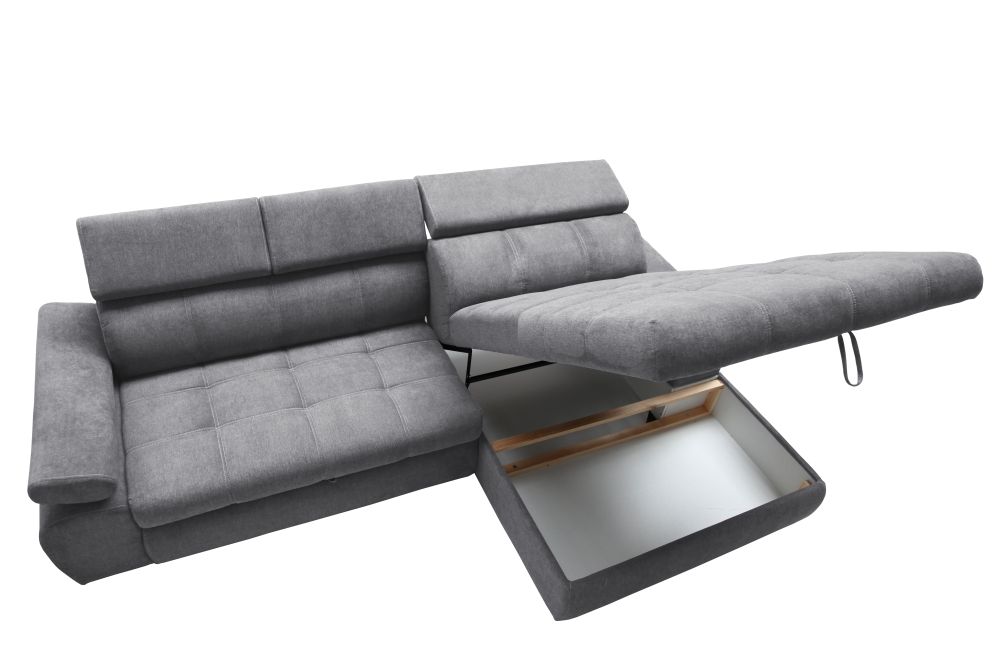 Dodatkowym atutem narożnika VILDE jest łatwy i szybki dostęp do pojemnika na pościel. To miejsce, które pozwala przechowywać koce, poduszki czy inne tekstylia, dzięki czemu Twój salon zawsze pozostaje uporządkowany.