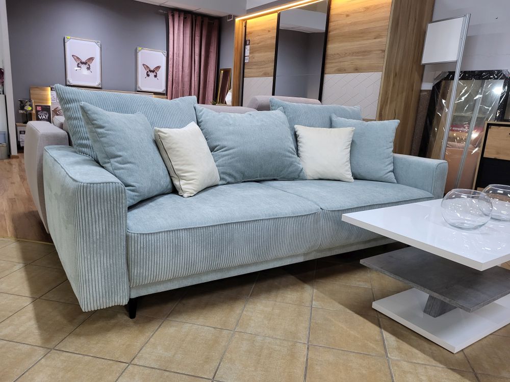 Nowoczesna sofa do wypoczynku z podwyższonymi nóżkami LARISA – KOLORY DO WYBORU
