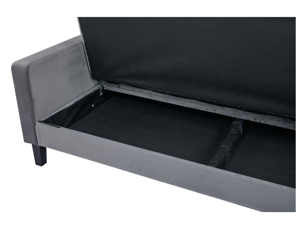 Trzyosobowa wersalka rozkładana z pikami OSKA to nie tylko wygodna kanapa i łóżko, ale również praktyczny schowek na tekstylia. Duży pojemnik na pościel umieszczony pod całym siedziskiem pozwala w łatwy sposób przechować koce, poduszki i zapasową pościel. Dzięki temu utrzymanie porządku w salonie czy sypialni staje się o wiele prostsze, a dodatkowa przestrzeń do przechowywania jest zawsze na wyciągnięcie ręki.