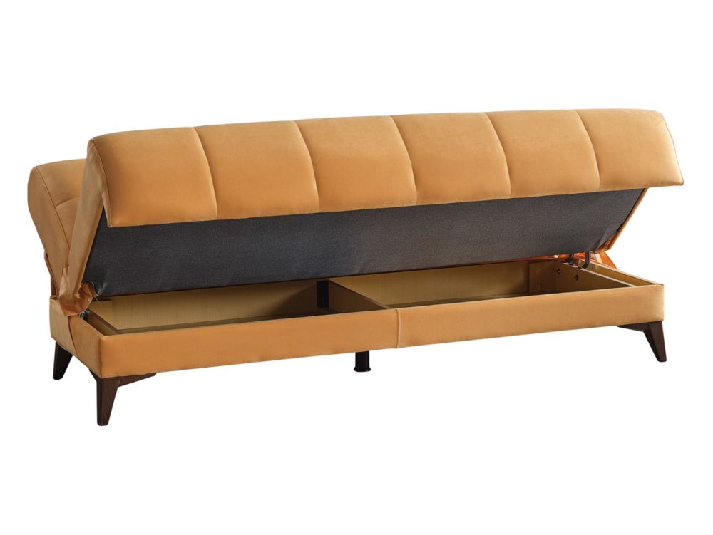 Pod siedziskiem znajdziesz pojemny schowek, w którym bez problemu zmieścisz kołdrę, poduszki czy koc. To rozwiązanie szczególnie cenne w mieszkaniach, gdzie każdy centymetr przestrzeni ma znaczenie.