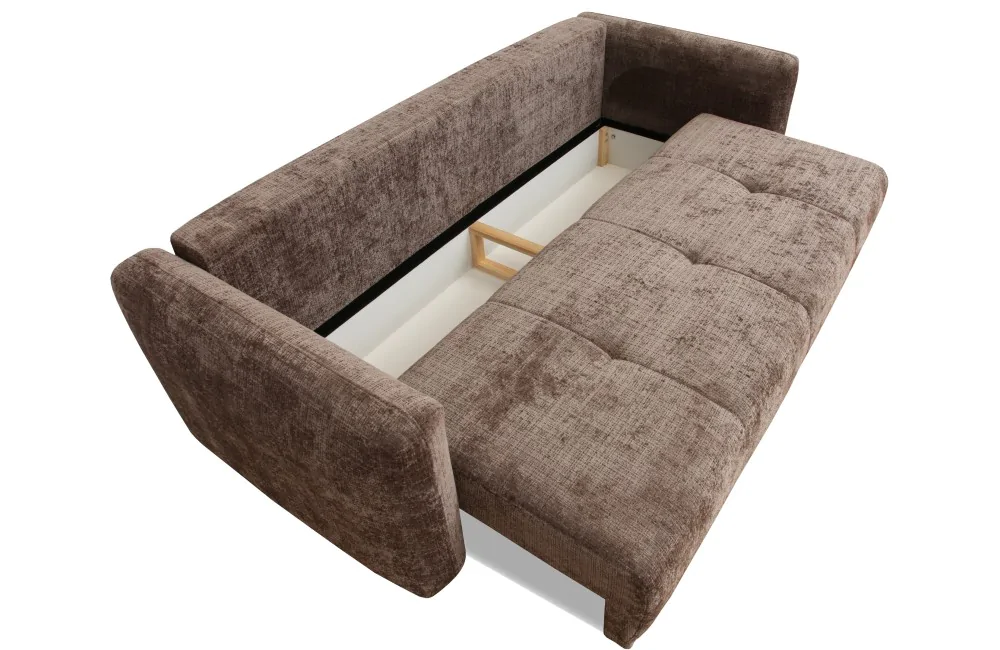 Szkielet kanapy wykonany został z wysokiej jakości drewna oraz płyty meblowej, co gwarantuje trwałość, stabilność oraz odporność na obciążenia. To konstrukcja, która zachowuje swoje właściwości nawet przy intensywnym, codziennym użytkowaniu. Wygodna kanapa z dużą powierzchnią spania ZEN to mebel zaprojektowany tak, aby służył przez długi czas bez utraty komfortu czy estetyki.