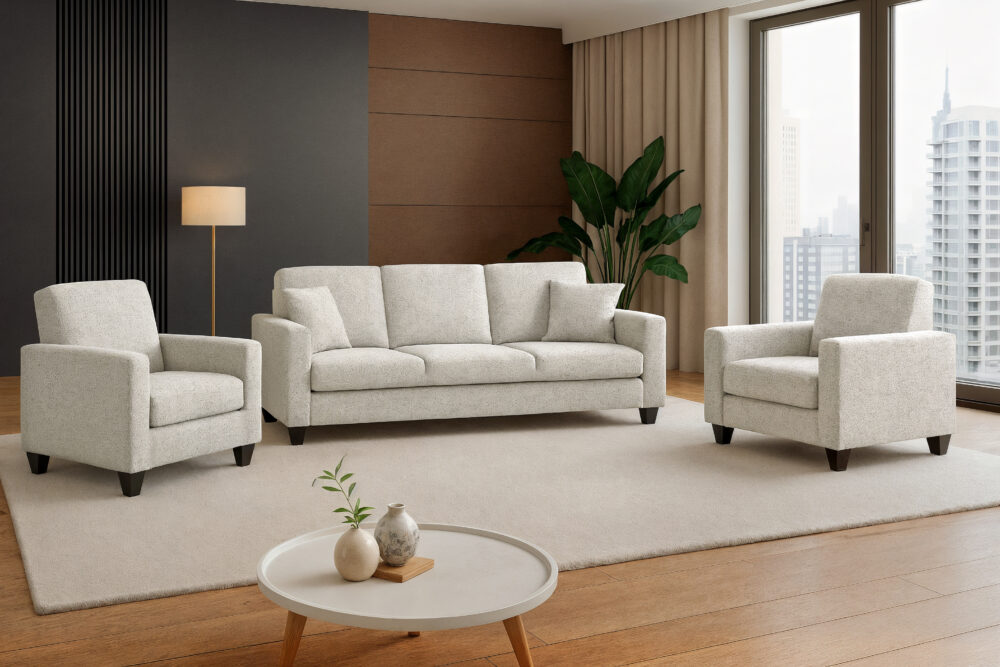Każdy element zestawu WENA 3+1+1 został zaprojektowany z myślą o najwyższym komforcie użytkowania. Wersalka wyposażona jest w sprężyny faliste oraz wysokiej jakości piankę, co sprawia, że siedzenie jest wyjątkowo miękkie, a jednocześnie stabilne. To idealne połączenie elastyczności i trwałości, które sprawia, że wypoczynek na tym zestawie to prawdziwa przyjemność.