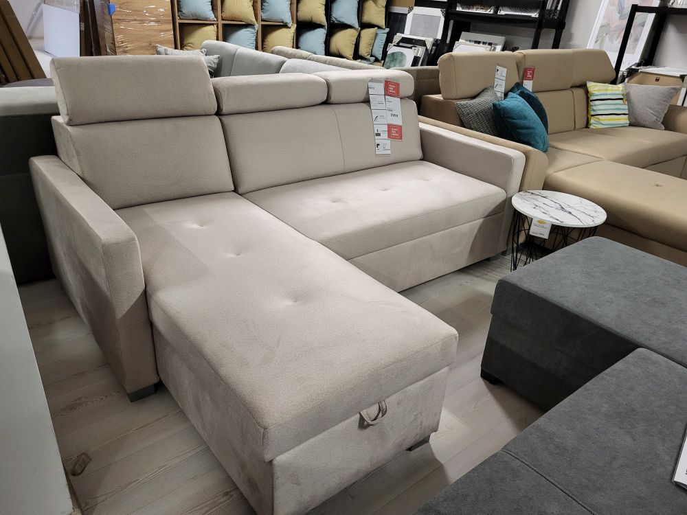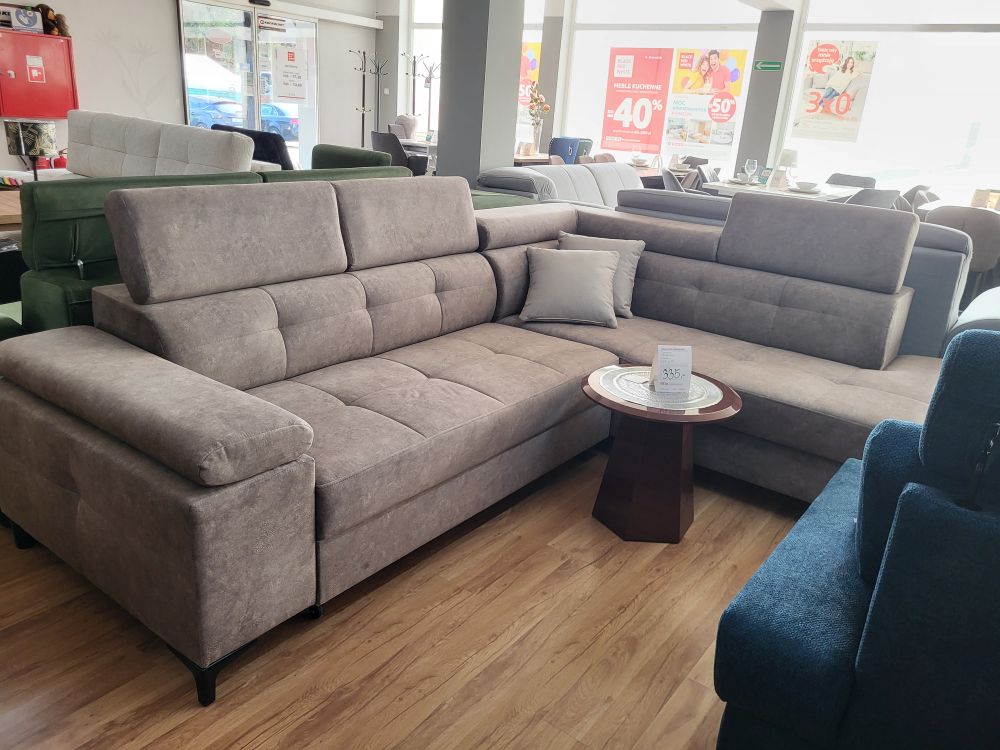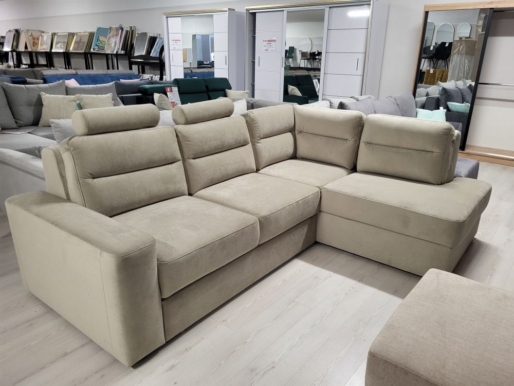 Bardzo wygodny narożnik z funkcją spania i zagłówkami PARIS